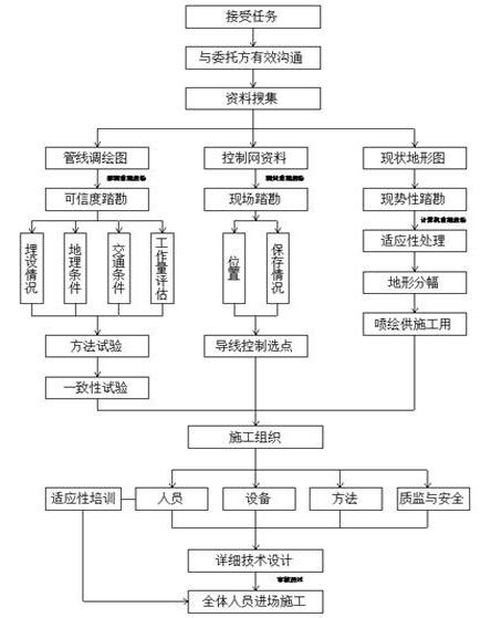 地下管线探查是通过现场调查和不同的探测方法探寻各种管线的埋设位置和深度, 并在地面上设立测量点,即管线点。通过使用管线探测设备查明的地下管线位置及重要特征点的平面位置和高程进行测量,并绘制地下管线图;包括对新建管线的施工测量和竣工测量。